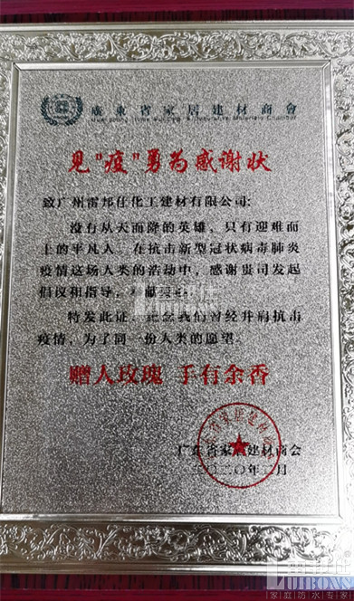 2020年伊始,新型冠狀病毒肺炎疫情深深地牽動(dòng)著國(guó)人的心,前線的醫(yī)護(hù)人員、警務(wù)人員等,都以實(shí)際行動(dòng)抗擊病毒,返回工作崗位開(kāi)工的人,也堅(jiān)守在各自的崗位,用自己的方式維持穩(wěn)定,還有很多人發(fā)揚(yáng)“一方有難,八方支援”的優(yōu)良傳統(tǒng),紛紛捐款捐物開(kāi)展各種支援活動(dòng),作為家庭防水t領(lǐng)軍品牌的雷邦仕防水,專(zhuān)業(yè)家庭防水17年,為無(wú)數(shù)家庭提供優(yōu)質(zhì)的防水材料,同時(shí)也是一家有責(zé)任、有良心、有愛(ài)心的企業(yè),在疫情爆發(fā)初期,雷邦仕防水就在廣東省家居建材商會(huì)發(fā)起抗疫行動(dòng)倡議,并捐款人民幣5萬(wàn)元,以及組織協(xié)調(diào)相關(guān)愛(ài)心人士在泰國(guó)、印度等國(guó)家購(gòu)買(mǎi)防疫口罩回國(guó),為國(guó)家戰(zhàn)勝病毒貢獻(xiàn)一份力量。