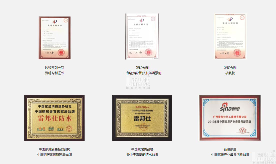 雷邦仕多年來專注家庭防水,專業(yè)從事家庭防水材料、施工和應(yīng)用技術(shù)的系統(tǒng)研發(fā)及產(chǎn)品推廣。 雷邦仕以進(jìn)口優(yōu)質(zhì)原材料為基礎(chǔ),憑借積淀深厚的技術(shù)實(shí)力,結(jié)合家庭防水實(shí)際需求,17年來,先后開發(fā)出通用/柔韌型防水漿料、瓷磚膠、彩色防霉填縫劑、防水膠、堵漏王、屋面液體卷材,及行業(yè)獨(dú)創(chuàng)產(chǎn)品“防潮寶”、“管口灌漿料”和國家發(fā)明專利產(chǎn)品“砂漿膠”、“瓷磚背膠”,形成了完整的家庭防水產(chǎn)品體系,有效解決家庭防水、防潮、堵漏的市場需求。